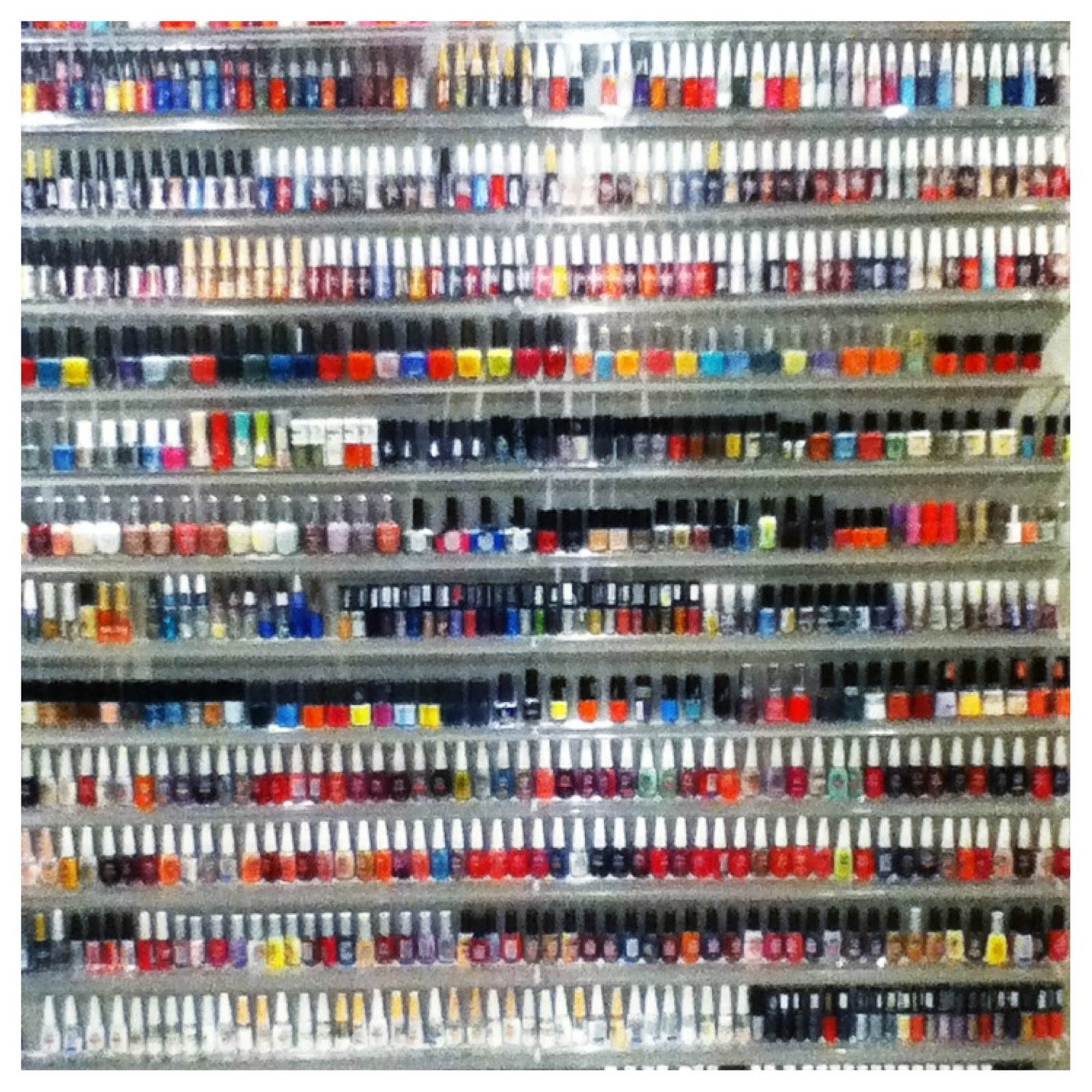 | Paredão de esmaltes. Fica difícil escolher assim… =P |