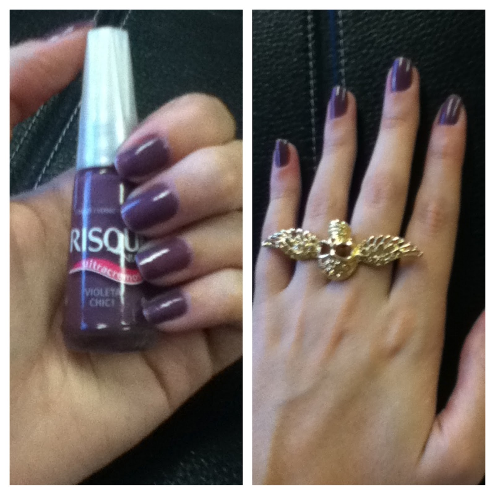 Essa semana eu consegui organizar os ponteiros e visitar a manicure. No caminho, passei na farmácia pra comprar um remédio que precisava e me encantei por esse vidrinho: Violeta Chic, da Risqué. Não sei se a cor é de uma coleção nova ou antiga mas, me encantei! 🙂