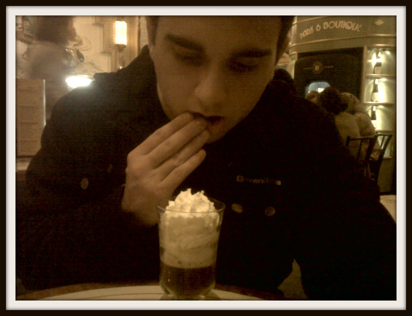 | Meu sobrinho e seu Irish Coffee (que também vem com muito chantily, do jeito que ele gosta!) |