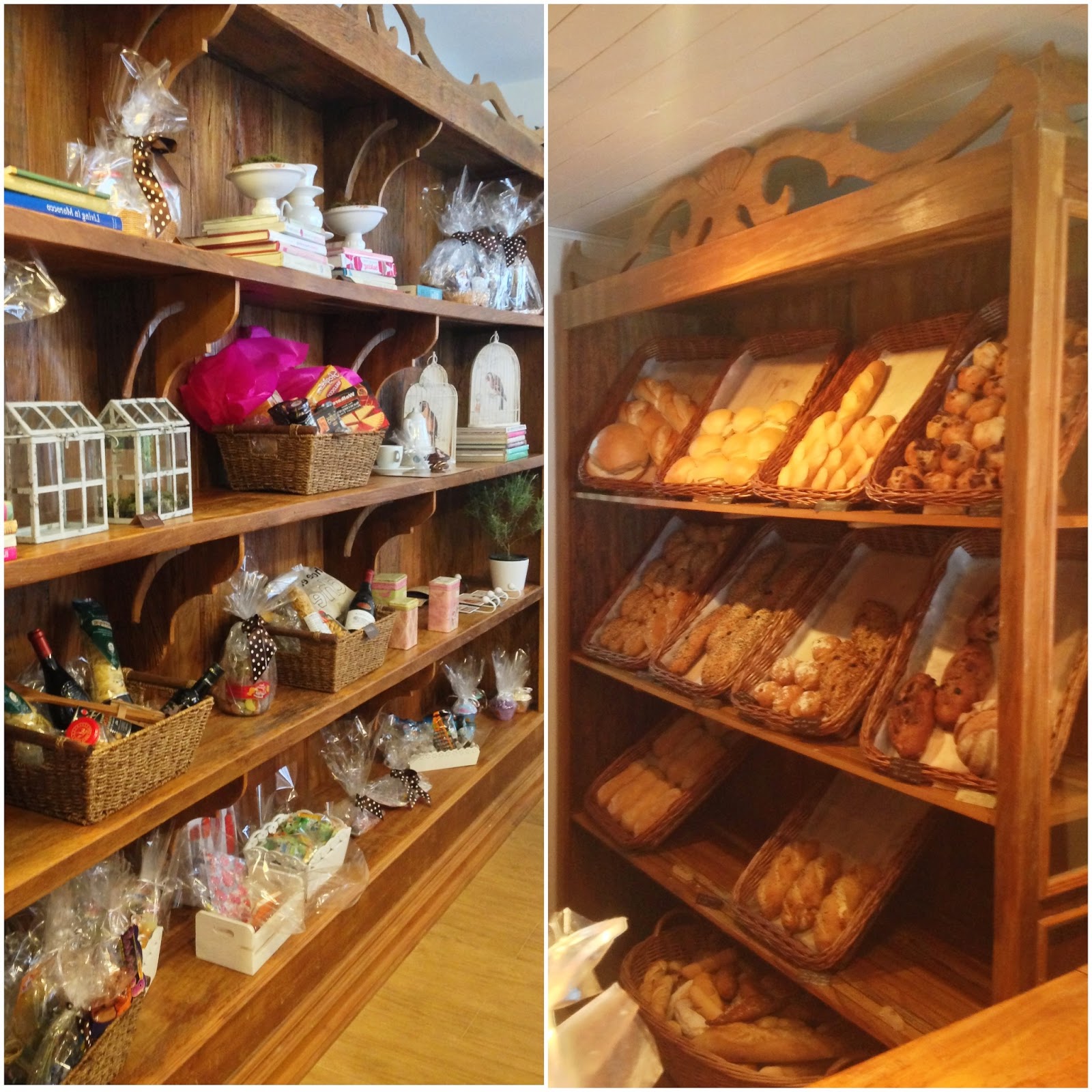 Logo de entrada tem um pequeno balcão de padaria com vários tipos de pães, brioches, croissants…