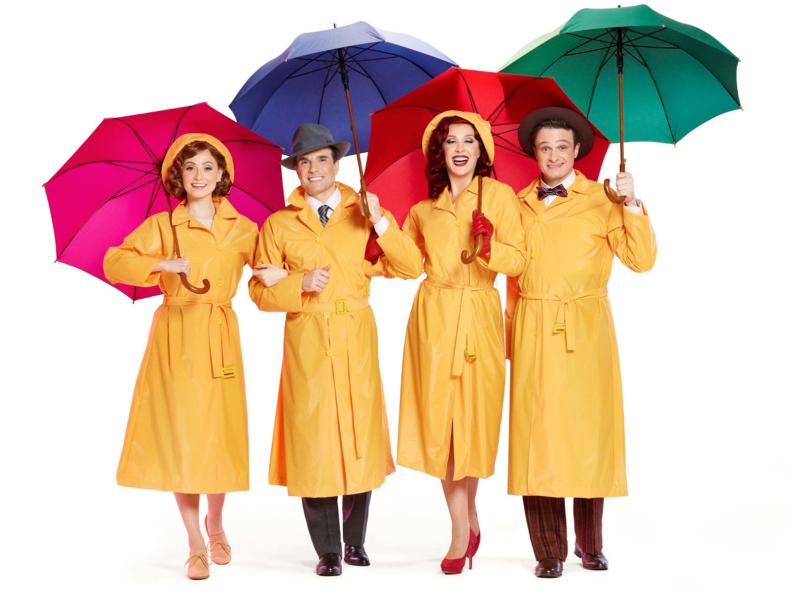 Vamos às curiosidades: a empresa contratada para fazer chover no palco é londrina e a água da chuva é aquecida em 29ºC para evitar que Jarbas e o restante do elenco fiquem doentes com a quantidade de chuva que tomam por semana. As roupas deles são impermeáveis para não se encharcarem enquanto dançam e cantam na chuva e há uma estufa esperando nos bastidores para que se sequem imediatamente após a cena. Ah! As primeiras fileiras da plateia ganham capas de chuva como as da imagem acima (por motivos óbvios aos que já viram o filme) e estou doidinha para voltar nessa reta final de temporada e garantir a minha – são lindas!