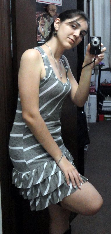 Finde: very special!!! Adoreiii seu vestido cinza de listras! Bjocas e ótima semana!