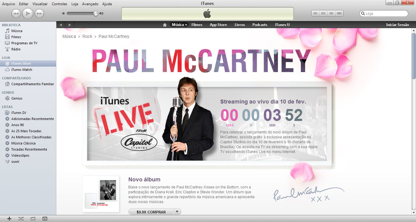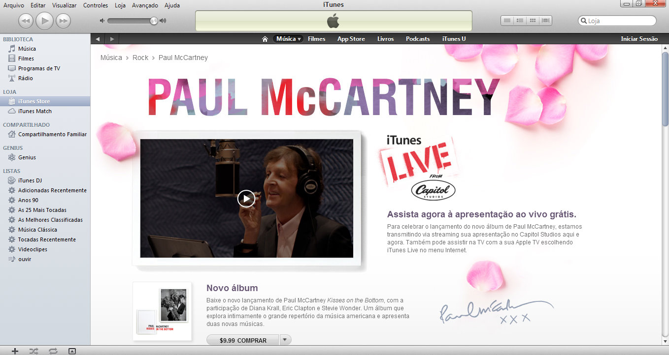 Na madrugada desta sexta-feira (10) o iTunes transmitiu gratuitamente e ao vivo o show do novo disco de Paul McCartney. O álbum é todo composto por covers de clássicos do jazz dos anos 20, 30 e 40. Para obter um resultado leve e elegante, Paul contou com a participação especial de Eric Clapton, Stevie Wonder e Diana Krall. Já dá pra ter uma ideia de quão delícia ficaram as melodias, não?