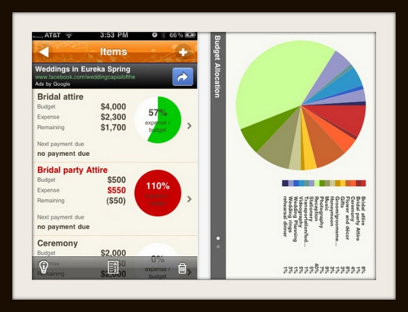 Planilhas de contas sempre serão bichos de sete cabeças para mim. Gráficos e tabelas e cálculos então, nem se fala. O Wedding Budget, isola gastos e os mantém atualizados individualmente. Assim, o monstro das dívidas absurdas e surpreendentes pós-casório fica longe de te assombrar.