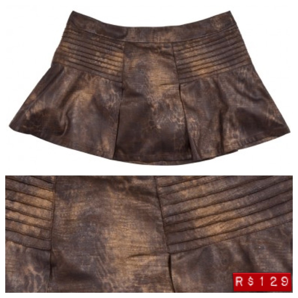 Eu caí de amores pela saia de couro e pela camisa branca com detalhes em azul!