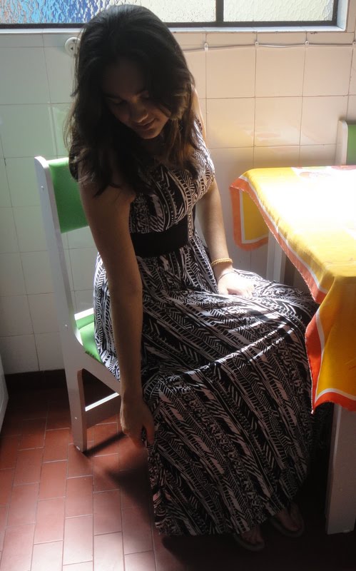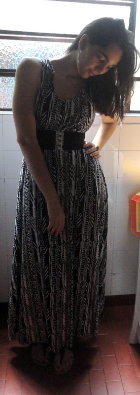 Camilla veste: Vestido e cinto, acervo; Sandália, Arezzo