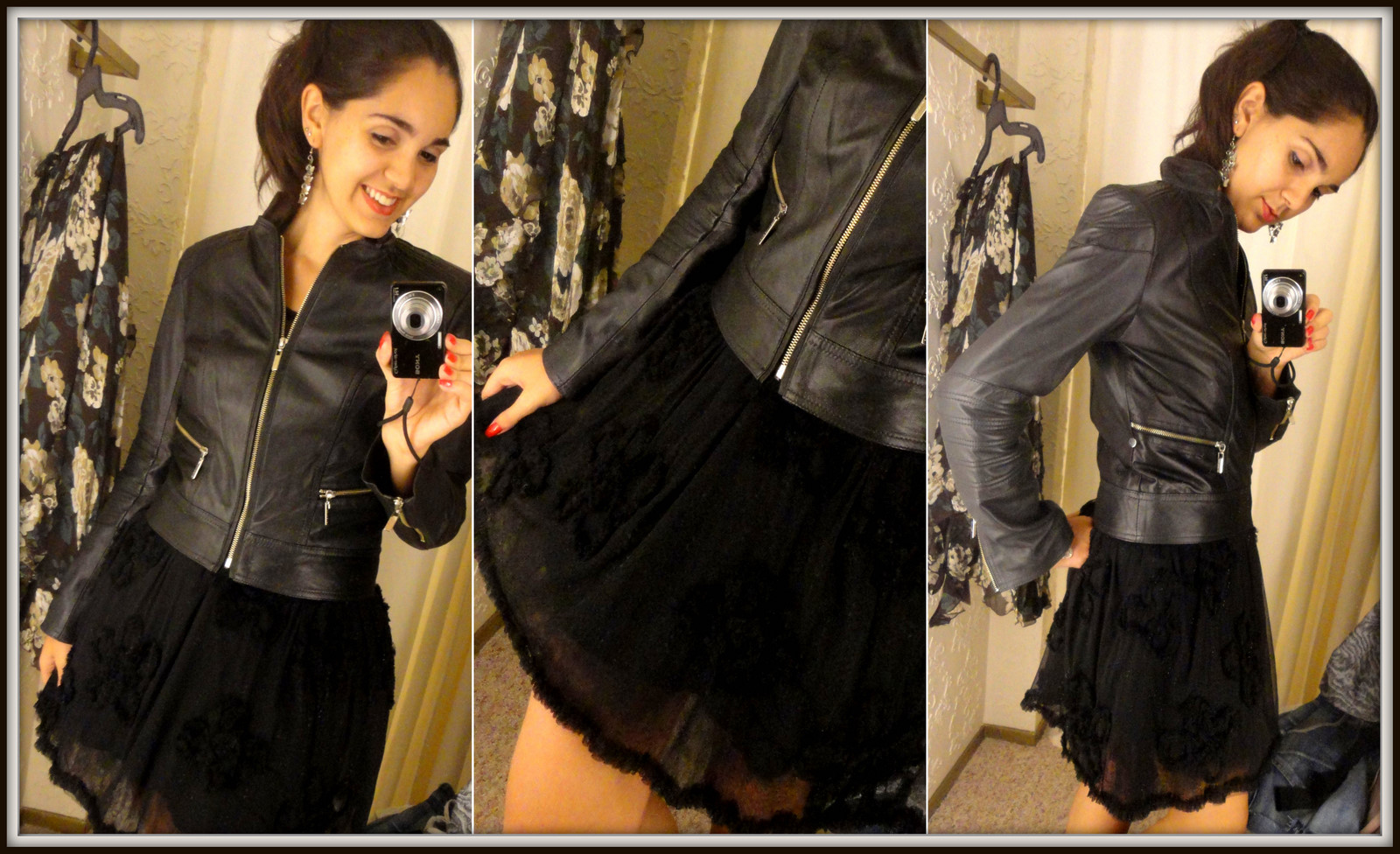 Quando escolhi o vestido de tule, no mesmo cabide me veio esta jaqueta. Modelo aviador, de couro. Perfeita pro inverno e combina incrívelmente bem com o vestido. Já imaginei uma meia cor da pele e uma bela ankle boot, pra completar o look.