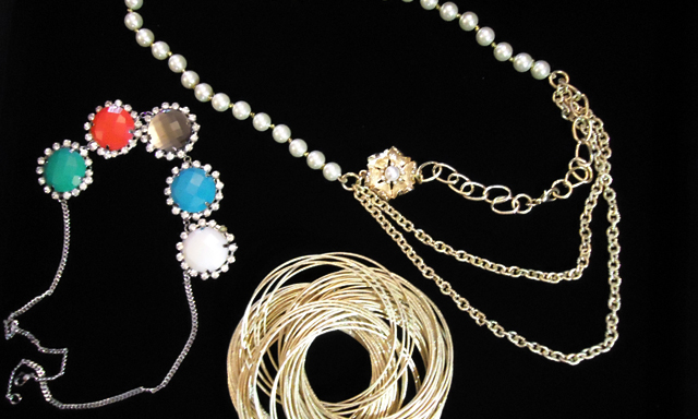 | Minhas peças favoritas: colar de bolinhas coloridas, pérolas e correntes e pulseira de vários elos |