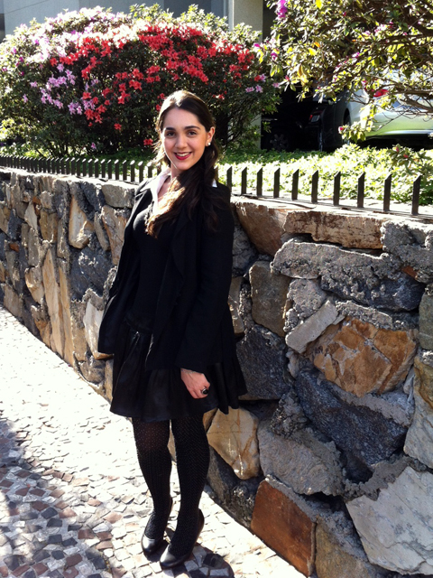 Ontem eu fui de meia-calça de bolinhas da Lupo. Porque eu sou apaixonada por ela e porque os dias têm sido frios cedinho e tarde da noite e, porque ela é tão macia que dá vontade de dormir abraçada!