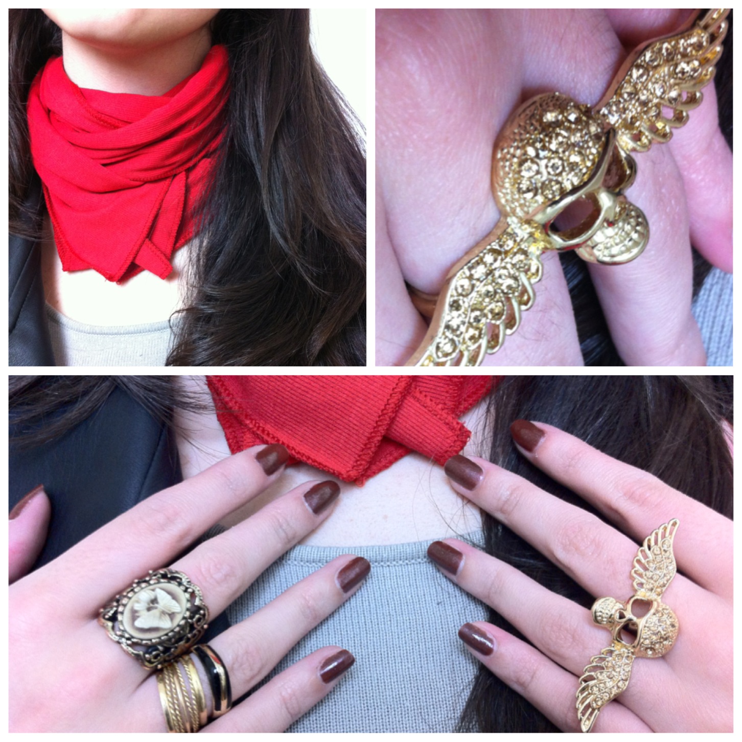 Lenço, ganhei no evento da Avon; Botas, Corello; Anéis, sortidos e já citados! 😉