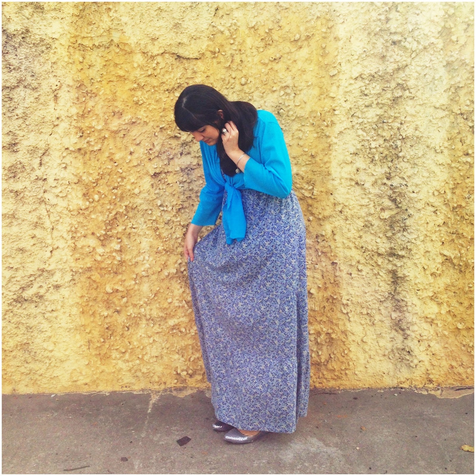 Domingo de dia das mães ensolarado e juntinho da família. Do jeito bom que é pra recarregar energias, dar risada e saber as novidades. E afofar muito a mama, óbvio. E lá em casa como manda a tradição, fizemos comidinhas gostosas desde cedo, pra curtir o dia junto. E como eu já disse pra vocês que eu me visto de acordo com o humor do dia, me vi escolhendo mini-flores azuis e uma camisa azul celeste, pra combinar. Nos pés, brilho prata pra dar um charminho e quebrar o look mono-tom. 🙂