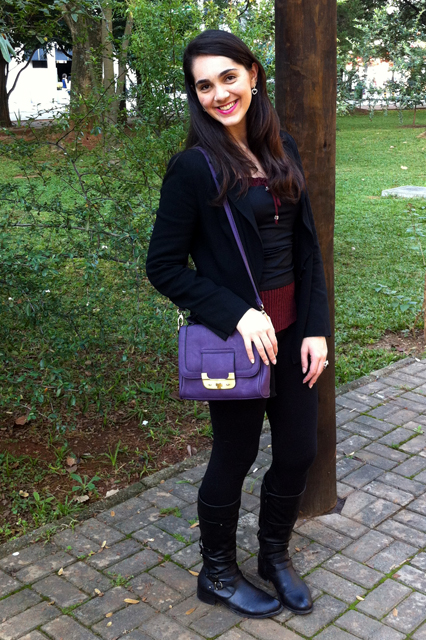 Blazer, Acervo; Tricô, Feira de Malhas; Regata, Hering; Legging, C&A; Botas, Ramarim
