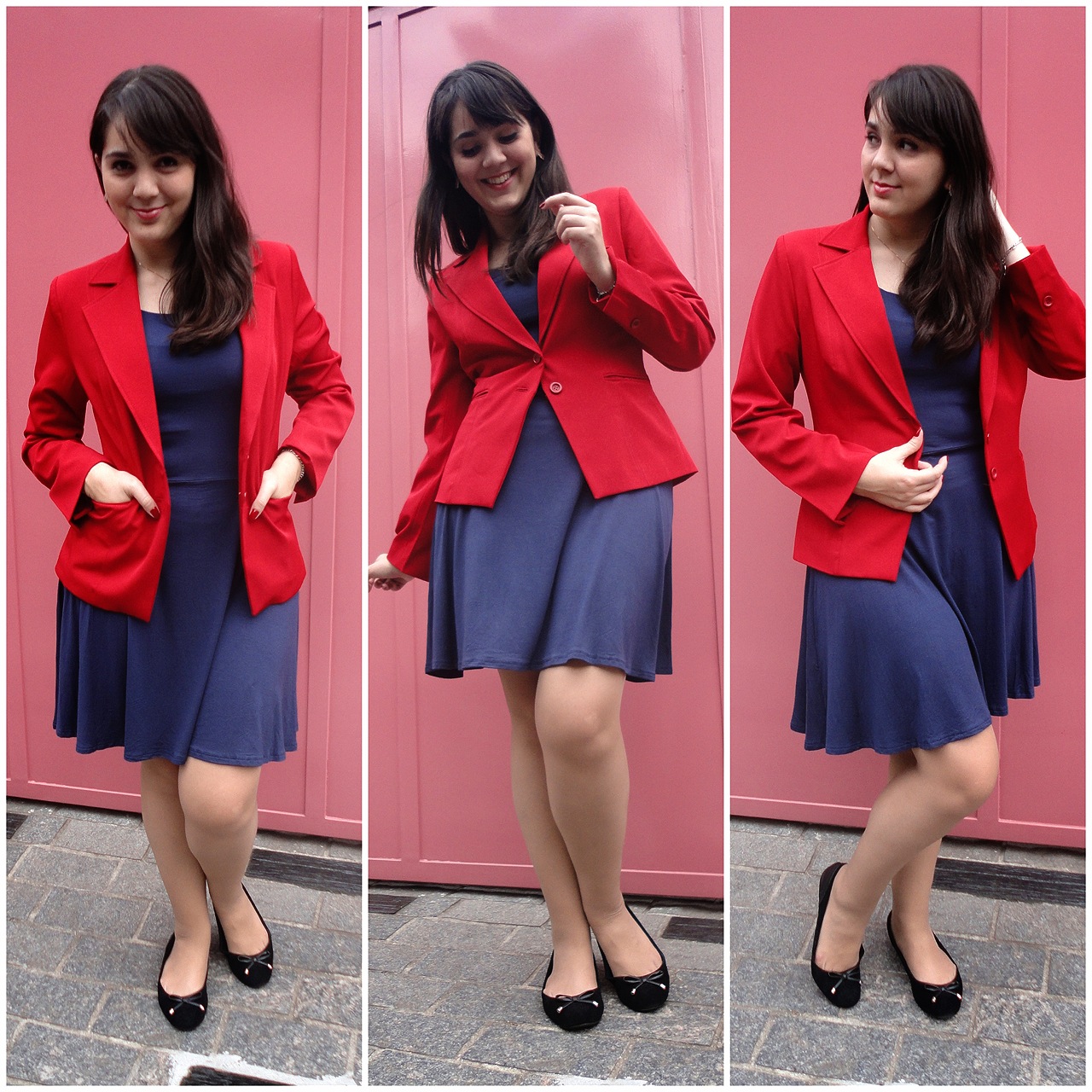 This look is great! I love how classic it is. Red and navy blue always look wonderful together!