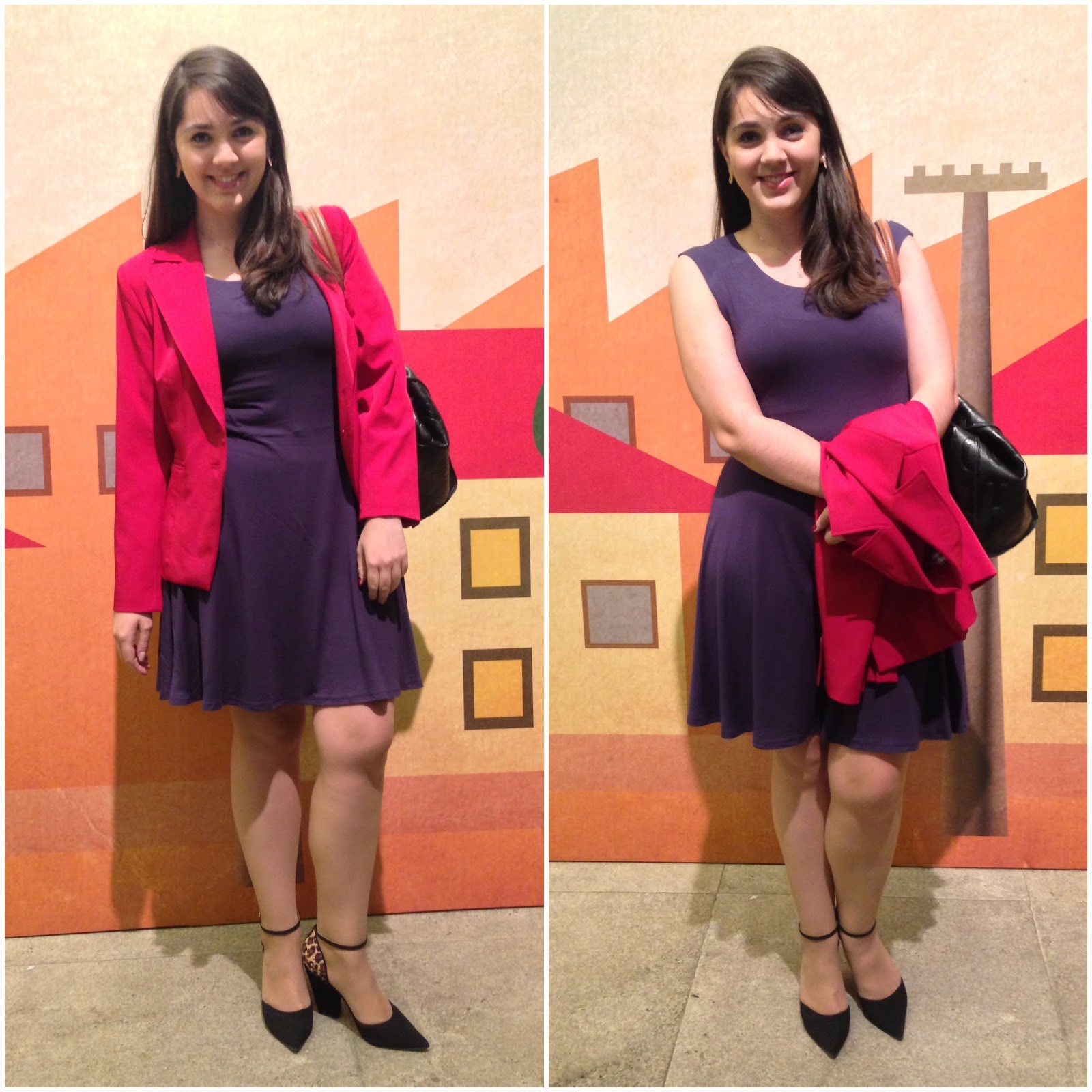 A quinta-feira foi super corrida e eu tinha que garantir dois looks apresentáveis sem carregar mais do o mundo habitual nas costas… : P Pra ajudar, o calor prometido chegou e veio com tudo! Lembrei que tinha comprado esse vestidinho leve na Collins e que ainda nem tinha tirado da sacola (!) e resolvi que o dia era propício à estreia! Como a previsão não ajudou muito a definir o dress code, com mínima de 10 e máxima de 30 graus para o dia, resolvi usar uma meia-calça cor da pele pra manter as pernas aquecidas. E levei um terninho pois não importa o calor que faça na rua, a agência é sempre gelada. [risos] Ele acabou me sendo bem útil também a noite, na saída do teatro.