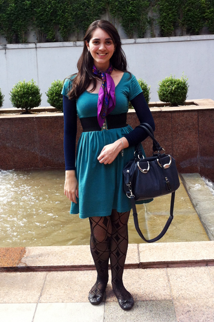 Vestido, Marisa; Segunda Pele e Meia-Calça, Loba; Lenço, da mamis; Bolsa, Le Postiche; Sapatilha, Lojinha do China