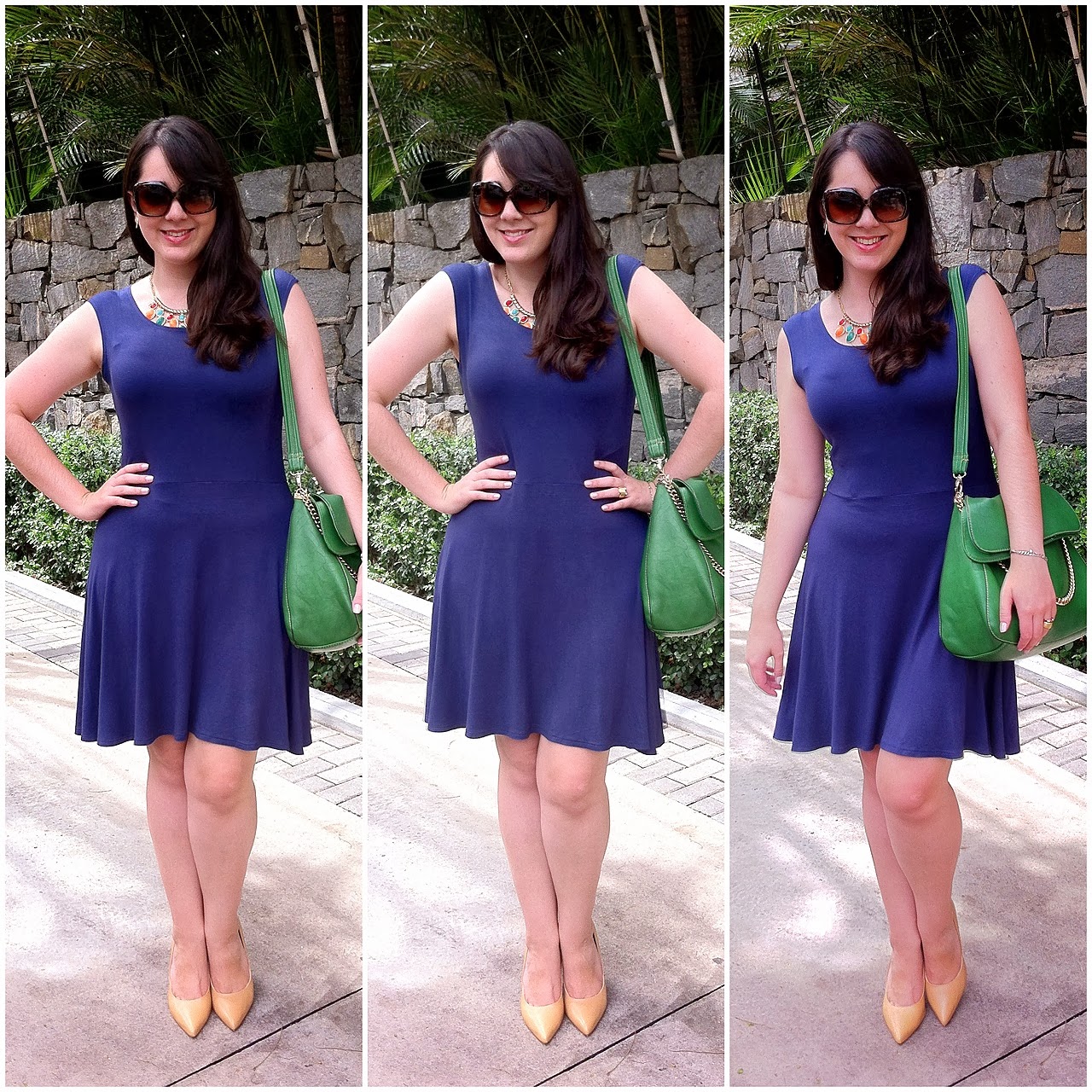 A semana começou cedo, ligada no 440v e quente. Então não quis pensar muito na produção porque passar calor e suar me tira todo o tesão de brincar no guarda-roupas. Aí nesse clima de correria e tempo quente, escolhi esse vestidinho leve e um colar colorido. Pra dar um charminho, scarpin nude altão. Que é a melhor forma de já começar a semana com tudo! 😉