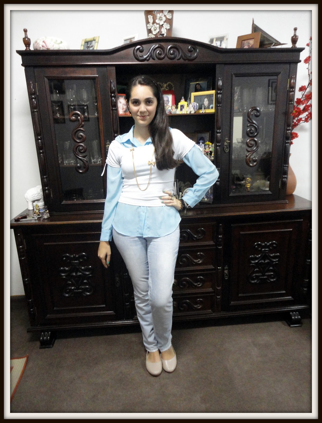 Camisa, mandei fazer; blusa branca, acervo; Jeans, Sawary (minha mais nova descoberta que vai ganhar post especial em breve! Me aguardem!); Sapatilha, Piccadilly; Colar, presente do namorado; Tiara e pulseiras, Accessorize