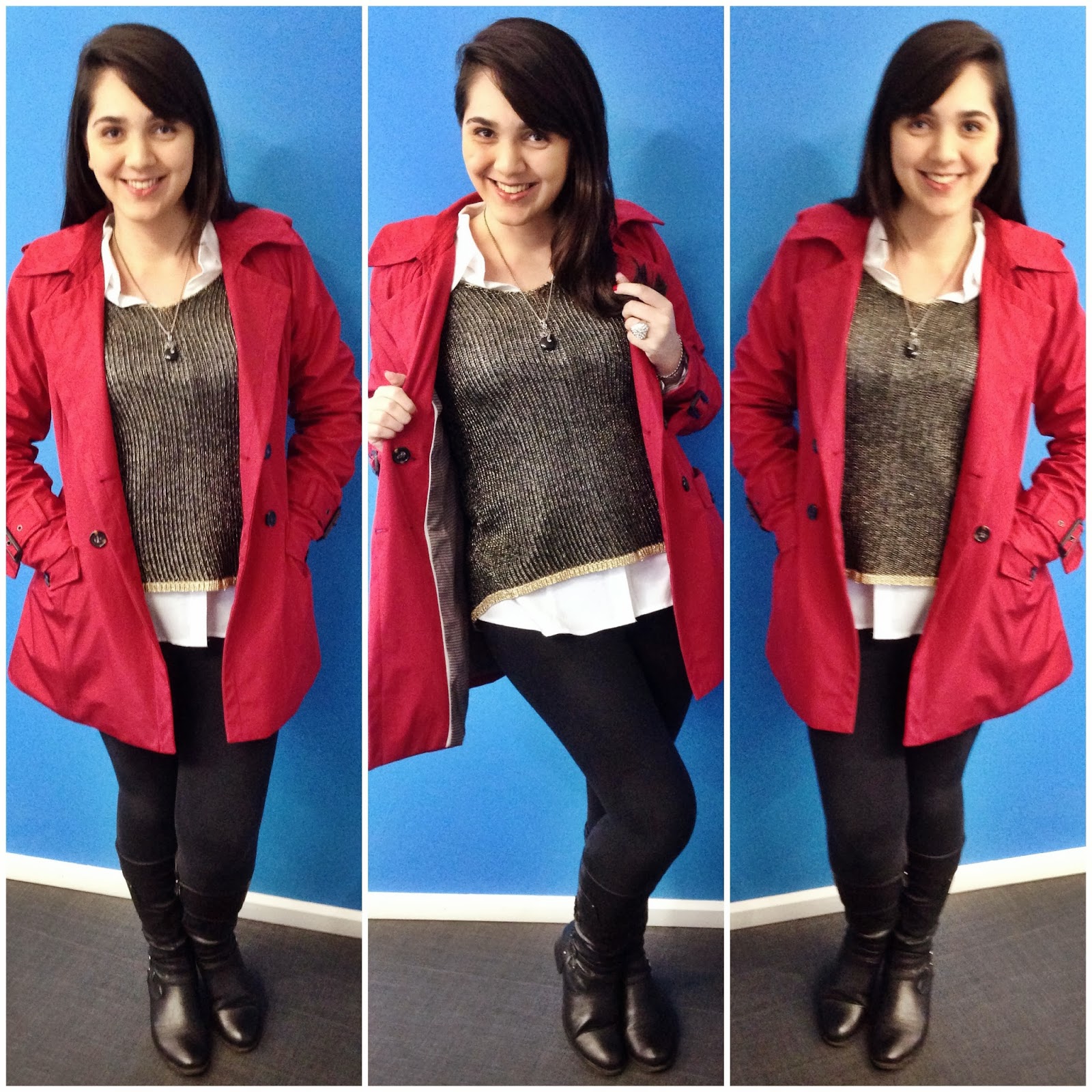 O look basiquinho mas com um casaco vermelho charmosíssimo!!