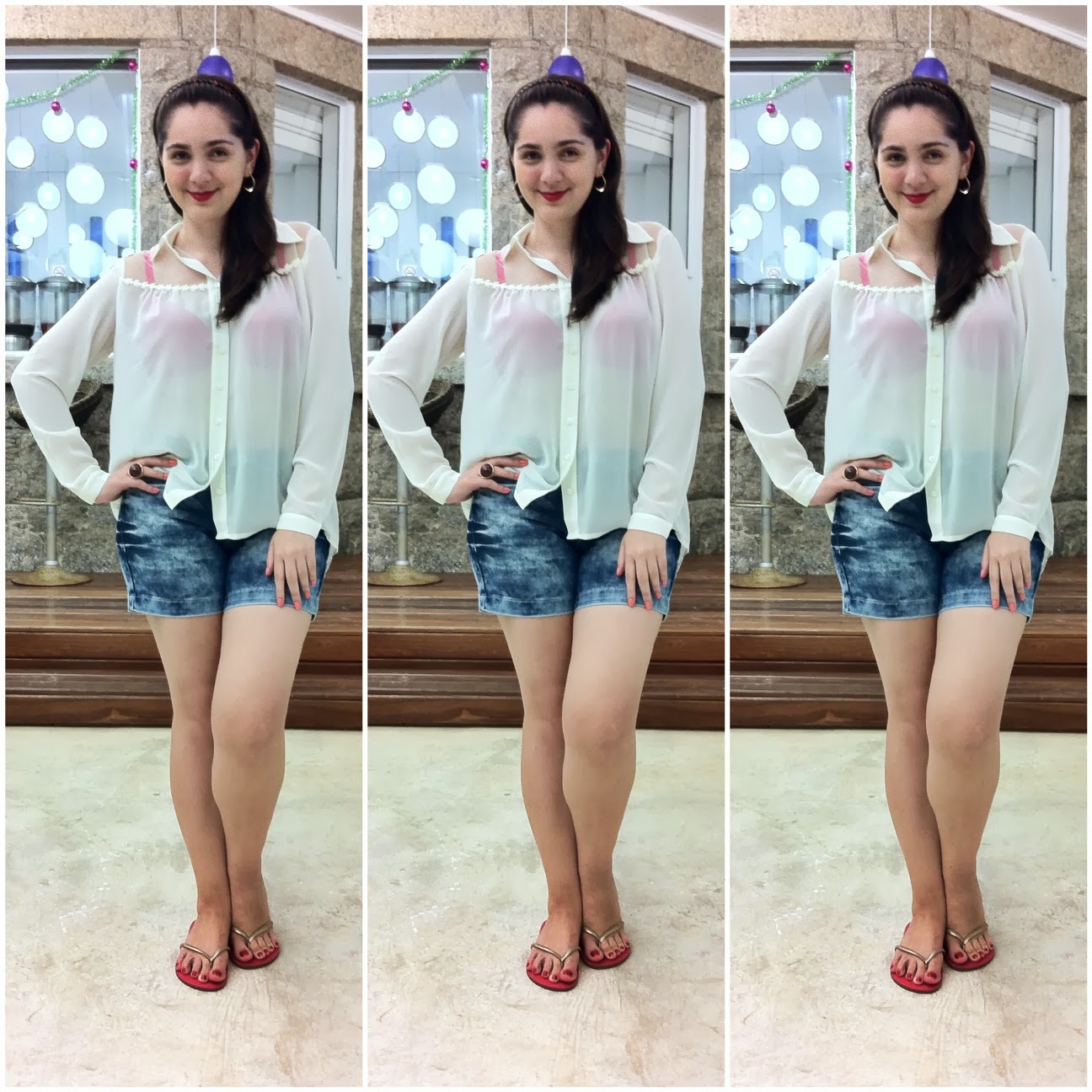 O meu réveillon foi na praia, vendo fogos, agradecendo a vida e me abastecendo de energia para encarar esse novo ano que se inicia. Escolhi uma camisa levinha e off-white, combinada com jeans e chinelo. Tudo bem básico pra enfrentar o calor e dar boas vindas à 2014!