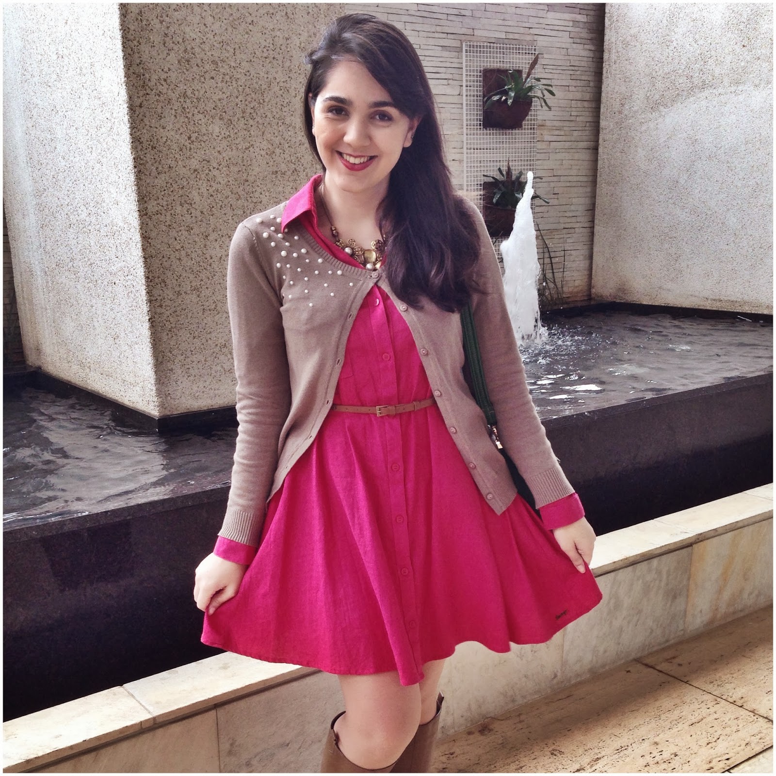 Ficou lindo o look, para usar em dias mais fresquinhos. Confesso que aqui no sul quando está frio, está muito frio rsrsrs daí é difícil não congelar com um look como esse. Mas agora quando amenizar mais o inverno e com a chegada da primavera já podemos por as pernas de fora e usar um casaquinho como esse. Adoro usar vestidinho e bota como o seu look, adorei! 🙂