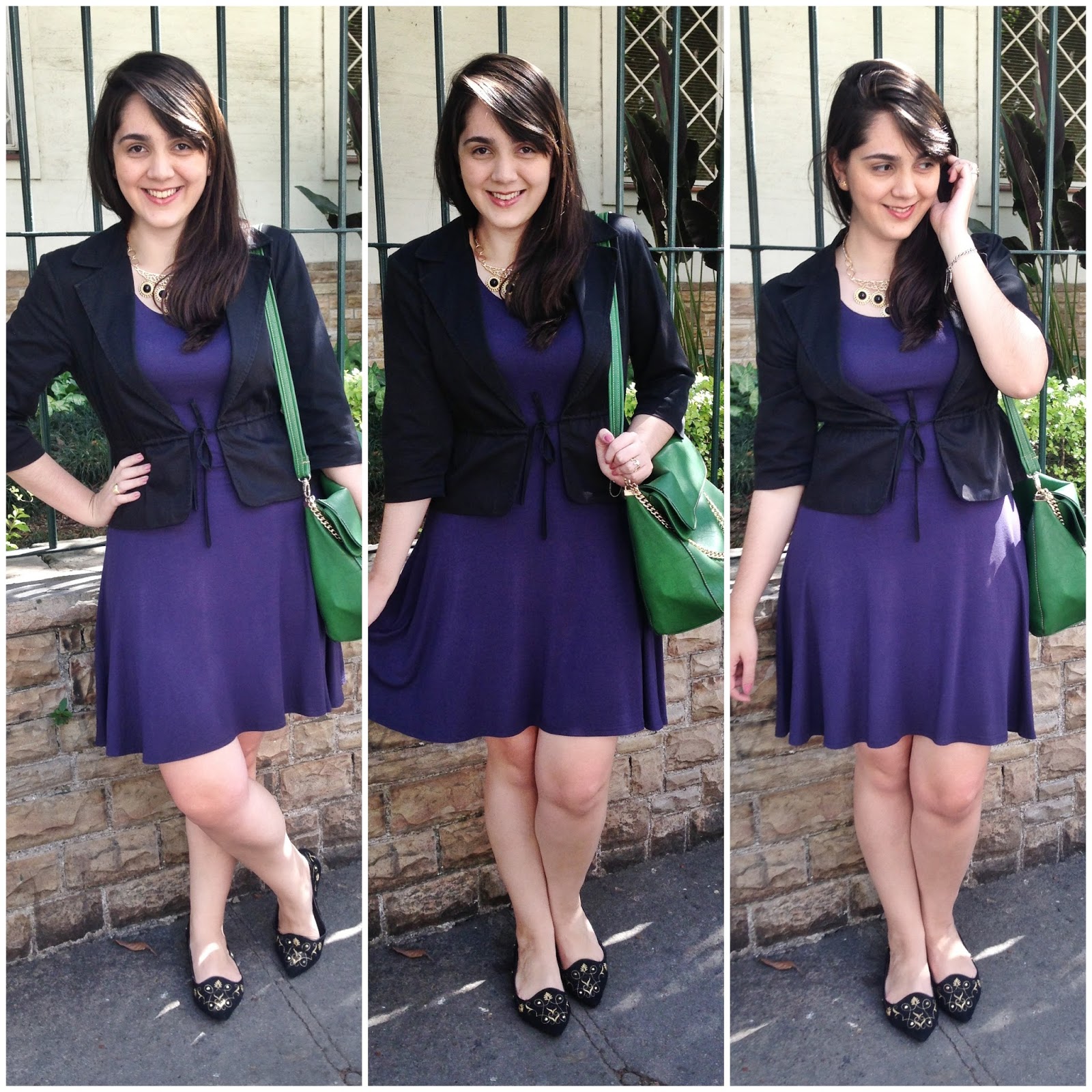 Eu definitivamente não quero ser a chata da história, que reclama do calor quando ele chega. Mas, poxa.. esses últimos dias foram tão quentes e secos que não consigo pensar muito em qualquer outra coisa que não sejam orações para que chova e o ar fique um bucadinho melhor pelo menos. Muita dor e muita fraqueza, só me deixaram ser clássica nessa escolha, que tinha de enfrentar o dia quente e chegar ao fim do dia vivo, pois ainda ia sair para jantar fora. Então sem muito pensar, peguei esse vestido azul que é super levinho e versátil. Pra combinar, dar um charme e proteger do sereno a noite, um blazer de manga 7/8. Durante o dia, os pés ficaram numa sapatilha. A noite só troquei por um salto alto e carreguei mais a make.