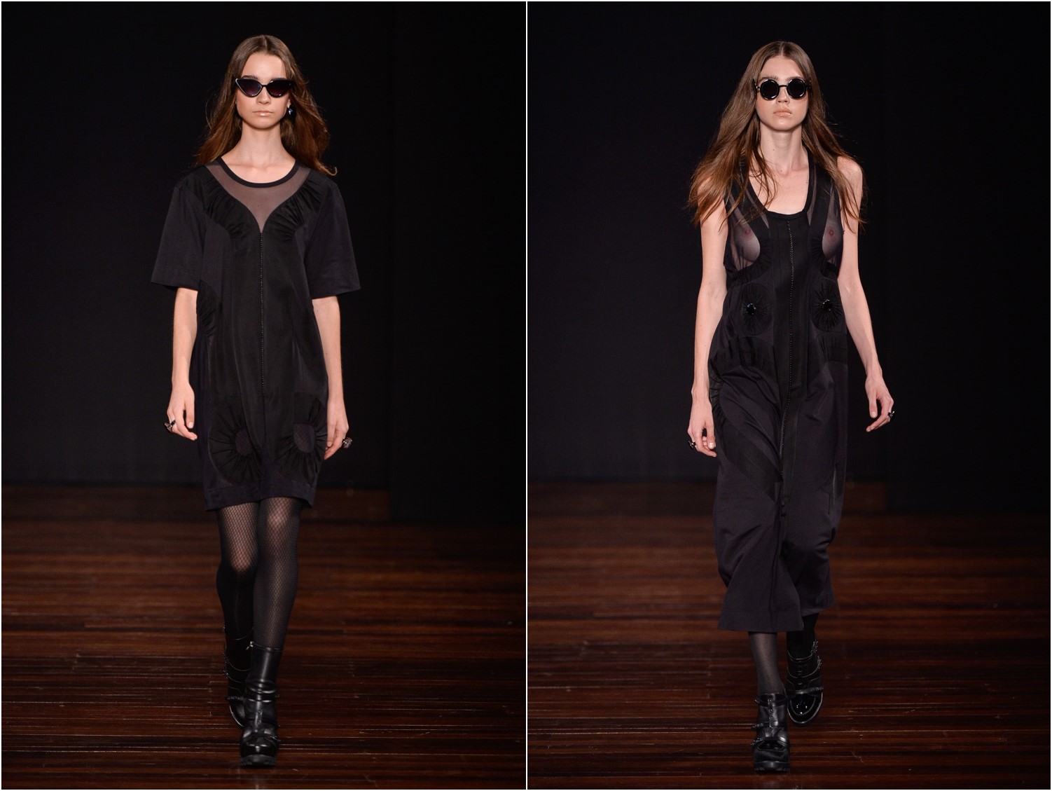 Os óculos desfilados foram parceria da marca com a Chilli Beans e também pensados para compôr o lado sombrio em contraponto à leveza de alguns figurinos.