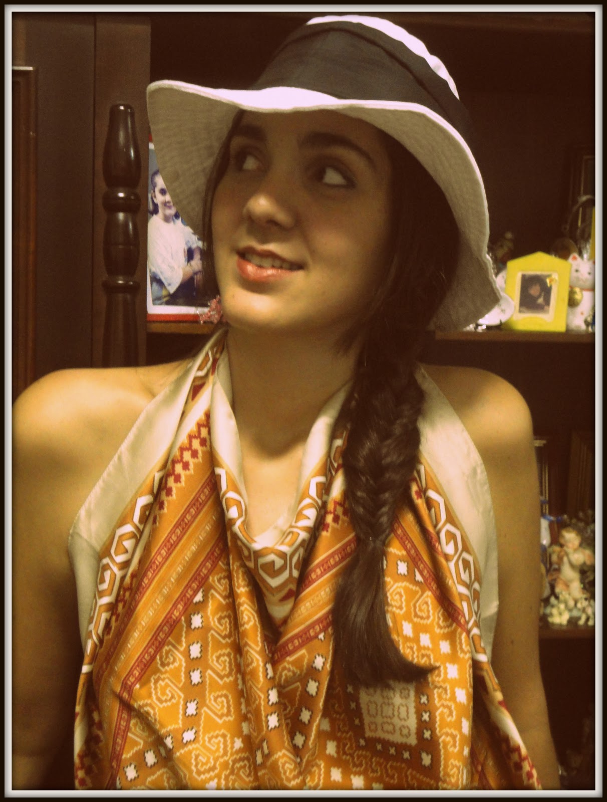 Adorei a ideia do chapeu e o lenço como blusa, diferente e lindo!!