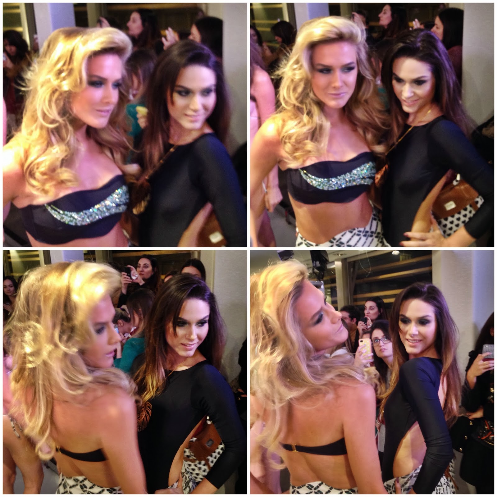 Quando enfim subi para conferir o desfile, me encantei com as peças pelo simples detalhe de que eles deixaram a estampa cheia de mini vidrinhos de Tresemmé. E fizeram isso sem deixar a estampa bizarra, daquelas que a gente jura de pé junto que nunca vai pagar pra usar e coisa e tal. Pelo contrário. Num fundo branco, surgem milhares de vidrinhos, formando um desenho bacana que de longe dá até um efeito. Mas confesso que o que eu mais curti foi a saída. E essa corre um sério risco de ir viajar comigo em breve! hehehe O desfile em si contou com a presença dea Fiorella Mattheis e Fernanda Machado, lindas e simpáticas, sorrindo até para a humilde câmera do meu celular! <3
