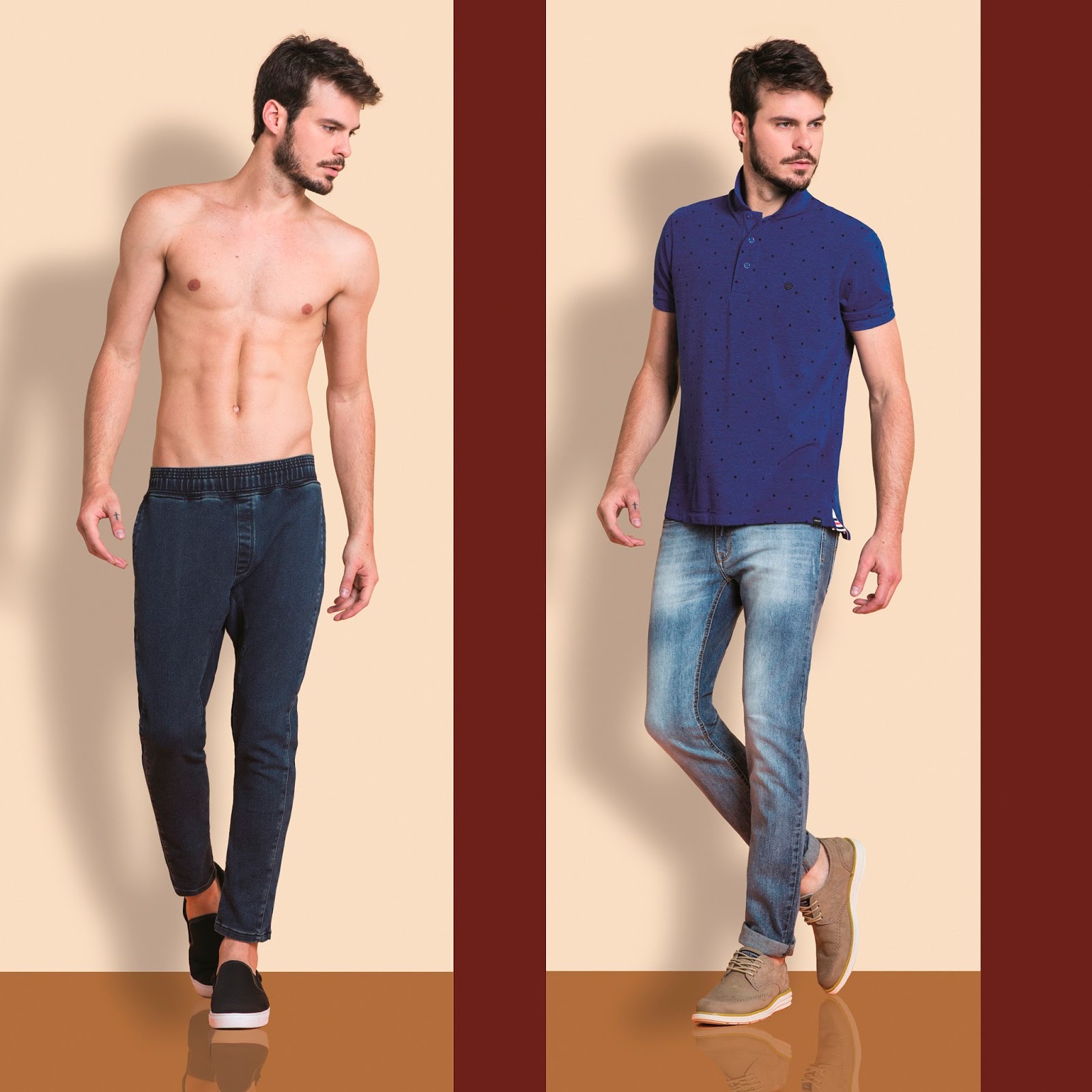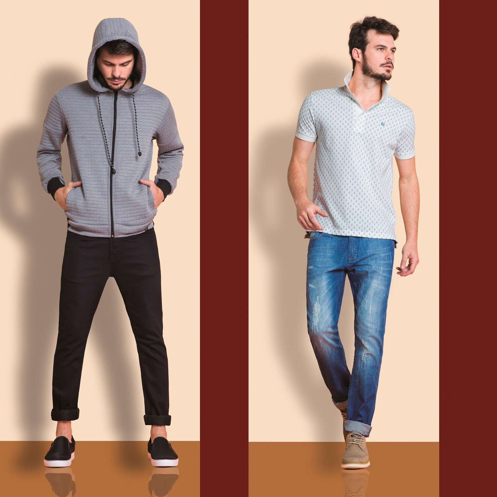 Para acompanhar esse lifestyle com conforto e muito estilo, o shape slim, querido entre este público, é visto em camisas e calças de ares modernos, mas ficam lado a lado de opções em cortes retos para quem prefere um caimento mais tradicional.