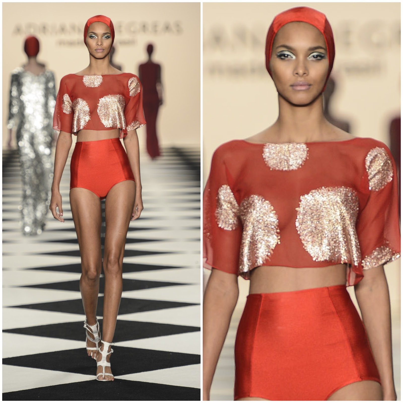 Inspirada na Copacabana dos anos 50 e com clima de boêmio da elite carioca e francesa, Adriana Degreas abriu o segundo dia de desfiles. A coleção marcada por traços e recortes é bem gráfica. E bonita. E cheia de transparências. Não muito usual para a praia mas, tratando-se da semana de moda, achei bem ok. Sem falar que mesmo com transparências ousadas, não achei a coleção vulgar. Pelo contrário: o toque sensual está presente em cada detalhe. E isso torna a coleção desfilada ainda mais interessante! 🙂