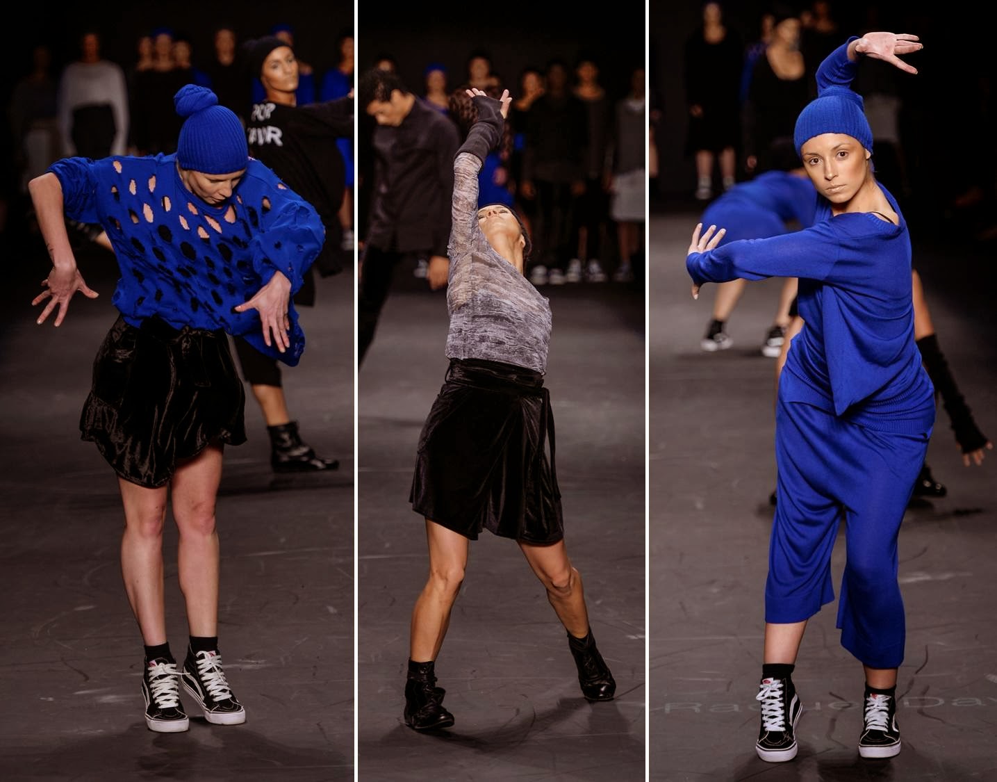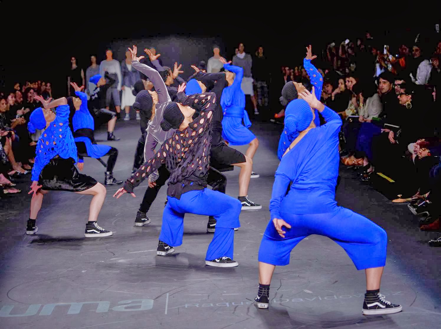 O desfile foi pra lá de lindo por trazer dançarinos e uma performance no lugar do usual desfile de carão. As cores são as básicas (preta, cinza, chumbo) combinadas e iluminadas por um azul klein divino.