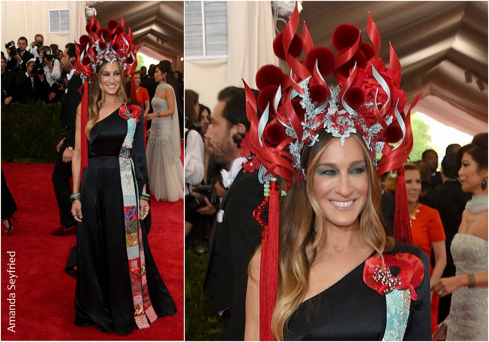 Sarah arrasou na escolha. Uns odiaram, acharam meio exagerado. Eu amei! Acho que ela se adequou ao tema que era: China, através do espelho. O mais legal? O vestido dela é H&M (desenhado por ela mesma) e o chapéu de Philip Treacy