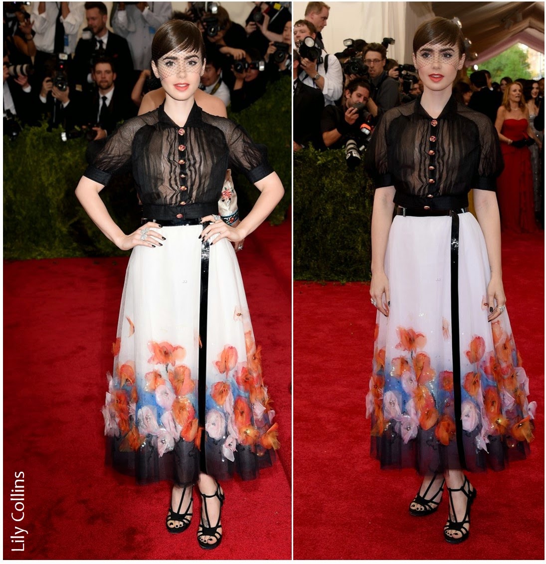 O que dizer da simplicidade e meiguice de Lily Collins? O look é all by Chanel. Gamei na saia, achei super linda. E o look todo é muito próximo de nós, meros mortais. Quem aí não poderia usar no dia a dia os elementos presentes nele? Todos podem! o/