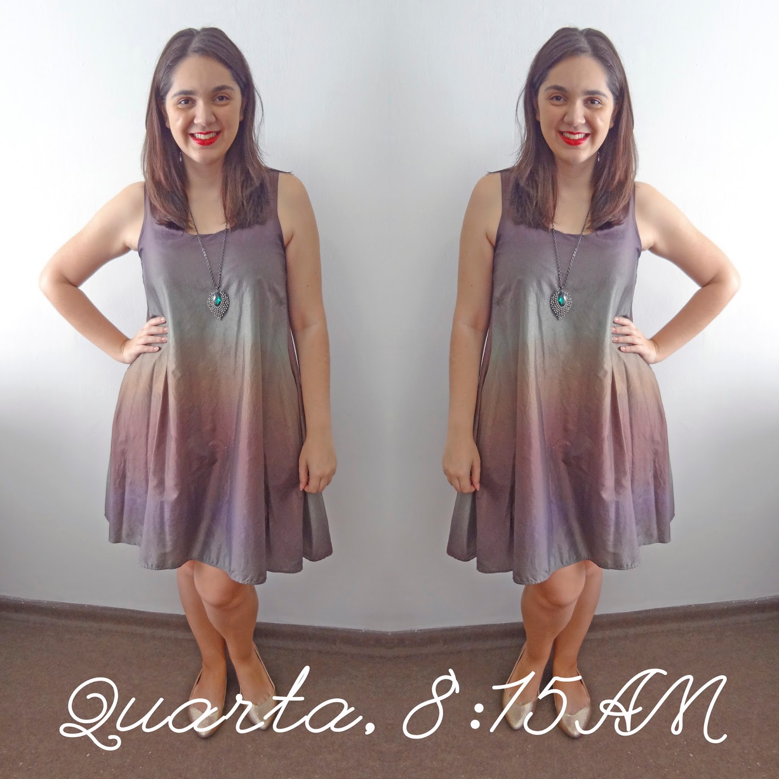 Quando o calor tá queimando meus neurônios a última coisa que eu quero é roupa grudada no corpo. AMO/SOU vestidos largões e túnicas porque deixam a pele respirar um pouquinho da brisa. E foi assim que eu lembrei desse aí da foto. Seu único defeito é que, ao contrário do anterior, ele amassa. :/ No quesito acessórios, nada de novo, repeti na cara larga por preguiça mesmo! 😛
