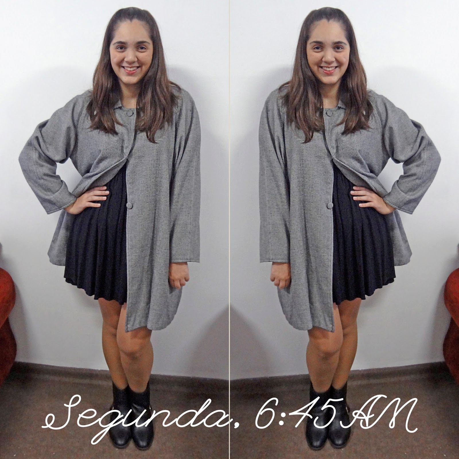 Segunda virou meu dia oficial da preguiça. E essa era mais ainda, porque eu trabalhei loucamente no fim de semana e estava daquele jeito: contando os segundos pro feriado! Tava friozinho de leve, então só joguei esse casacão que eu amo, por cima! 🙂