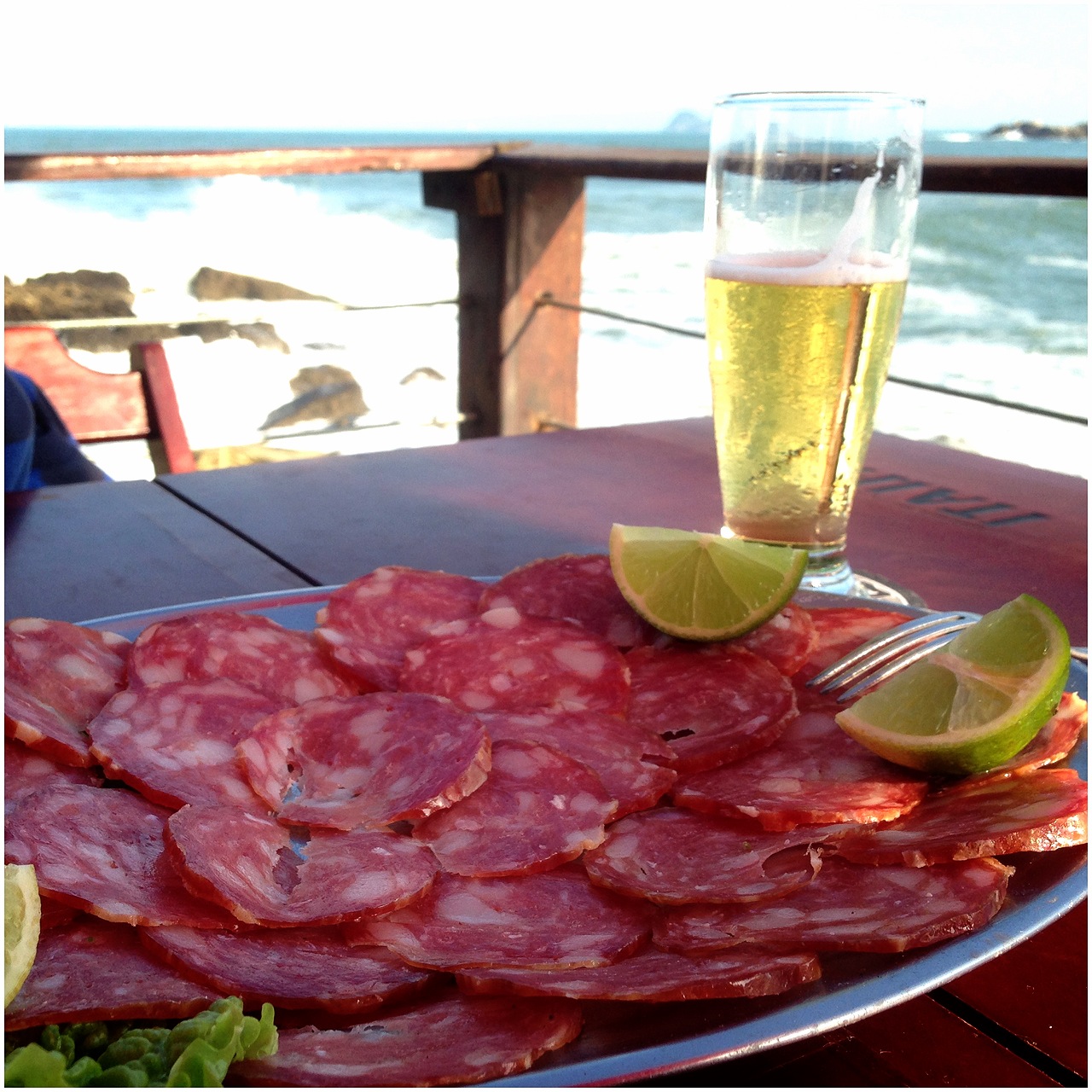 Eu amo viajar. AMO. Não importa se é coisa de dois dias, uma semana, um mês.. o fato é que viajar faz a mente ficar leve. E a casa da gente parece ainda mais aconchegante no retorno. E parece que a gente reabastece o corpo de energia para continuar na luta. 🙂 Nesse fim de semana, fui descansar na praia com o namorado. E mesmo pegando um congestionamento na descida, não podia ter sido mais delicioso nosso tempo por lá. O jantar do sábado foi no nosso já habitual e confortável Hangar (vou fazer um post especial para ele em breve!). Muito estranho jantar à beira-mar de botas e casaco mas, nos divertimos demais! Acordei no domingo por volta de 9 da manhã e pelo banho de luzes e calor que inundava o quarto por entre as frestas da janela, tive a certeza de que o dia seria lindo. Tomamos café da manhã (com direito a pão de cará que eu simplesmente amo) e seguimos para a praia. Ao chegar no calçadão foi necessário abusar do casaquinho. Ainda ventava muito e se parássemos ou ficássemos na sombra, o frio tomava conta. Mas na briga de clima entre frio e sol…….